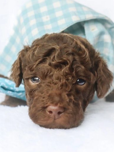”Creed” is a stunning wavy (+/-) Petite/Micro-Mini Chocolate Goldendoodle from Dolly Mae x Fynn’s “Everlasting Love” multi-gen goldendoodle litter. We expect him to be between 9-15 pounds at adult weight. Reach out today to see if our sweet Creed would be a good fit for your family! Chance goes home 02/07/26! He is a non-shedding, hypoallergenic petite goldendoodle puppy hand-raised in-home. He is fully socialized and desensitized.