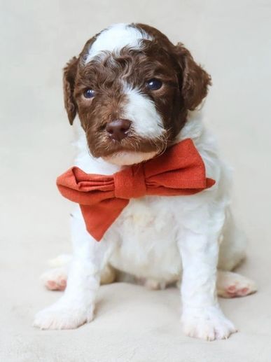 ”Beacon” is a gorgeous wavy (+/-) Petite/Micro-Mini Chocolate brown & white Parti Goldendoodle from Dolly Mae x Fynn’s “Everlasting Love” multi-gen goldendoodle litter. We expect him to be between 9-15 pounds at adult weight. Reach out today to see if our sweet Beacon would be a good fit for your family! Beacon goes home 02/07/26! He is a non-shedding, hypoallergenic petite goldendoodle puppy hand-raised in-home. He is fully socialized and desensitized.